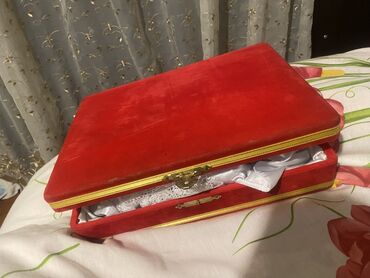 - Qablaşdırma: içi atlasla örtülmüş qırmızı məxmər qutu, metal kilidli