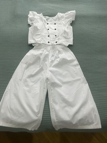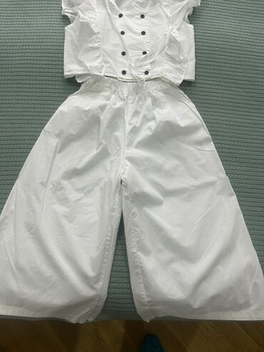 Ağ rəngli qadın dəst – 2 hissəli S ve M razmere gedir - Üst: Çiyinləri bəzək düymələri ilə vurğulanmış, qolsuz, düz kəsimli tunik. Ön hissədə asimmetrik, laylı kəsim detalı. - Kəmər: Ağ rəngli, qı...