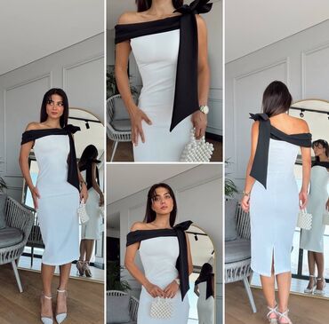 EndirimsizBir dəfə Toya Geyinilib 55azn'a alinib Şekildeki Qizin Eynindeki kimi durur don Zərif ağ midi don – çiyinüstü kəsim və böyük qara bant detalı