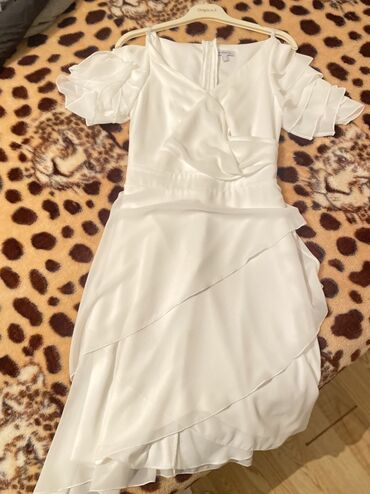 TECILI SATILIR‼️ Ag rengli, qısa ziyafet donu Parlaq, formaya saxlayan material (atlas/saten tipli) Toy, nişan, məzuniyyət və xüsusi gecələr üçün ideal😍 Razmer XS-S Ancaq bir defe geyinilib, cox y...