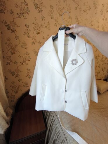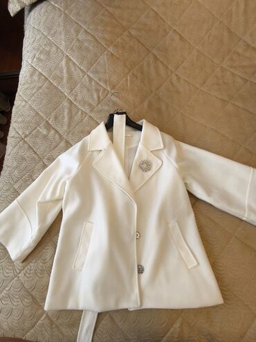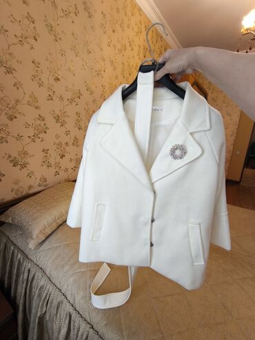 Ağ rəngli qısa palto/jaket - Klassik haşiyəli geniş yaxalı - Ön
