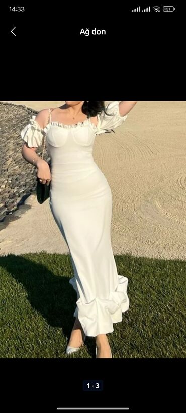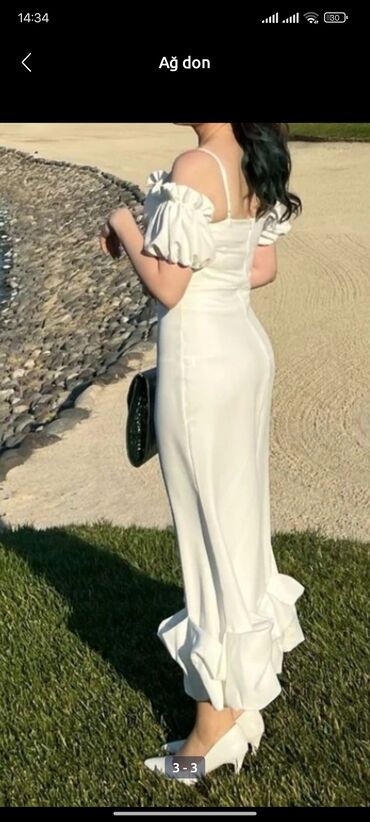 Qadın siluetini vurğulayan romantik fırfır detalları və açıq çiyin kəsimi ilə diqqət çəkən şıq model.120 azne alınıb M razmer