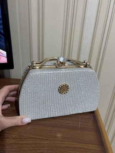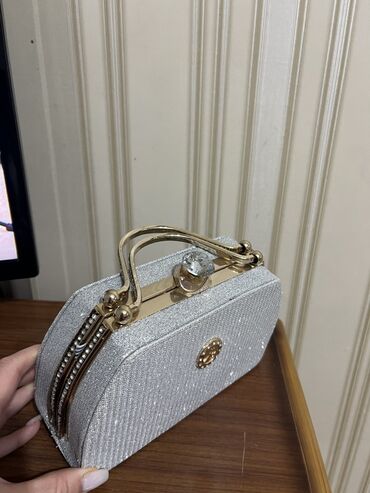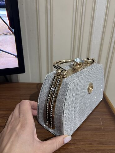 Gümüşü rəngli zərli axşam çantası (clutch)