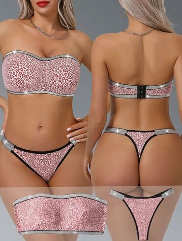 - Çəhrayı leopard printli bantau və uyğun tanga alt
