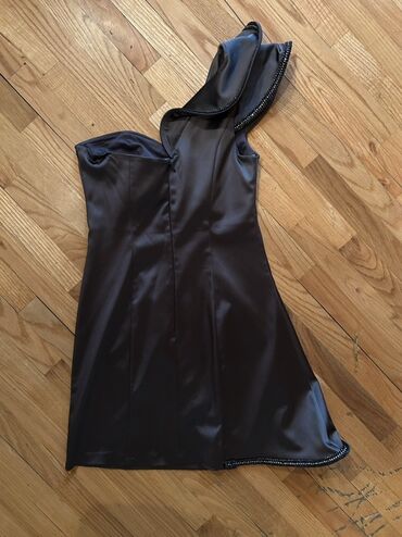 EndirimsizQara/qrafit atlas parıltılı, birqollu kokteyl/axşam geyimi.