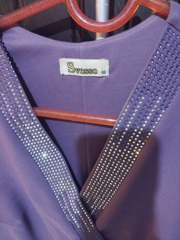 Bənövşəyi rəngdə ziyafət geyimi cox az geyinilib - Model: Uzun, düz kəsim, arxa hissədə yarıqla - Yaxa: Geniş “V” formasında, çiyinlərə oturan parıltılı/payetli bəzəkli üst hissə - Material: Qalın...