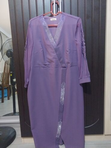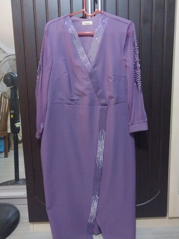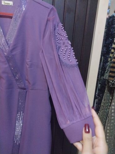 Bənövşəyi rəngdə ziyafət geyimi cox az geyinilib - Model: Uzun, düz