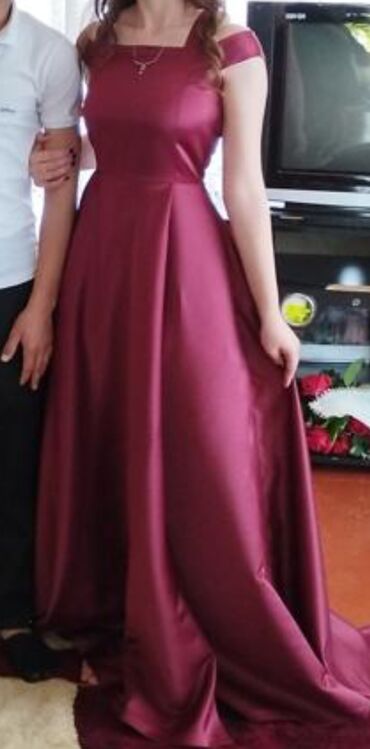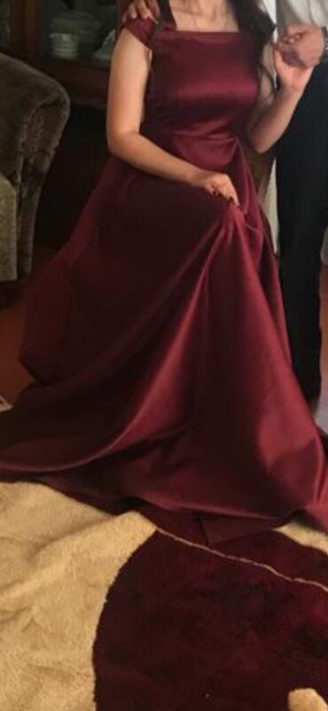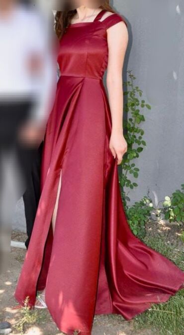 Bordo rəngdə uzun yarığlı ziyafət-gecə geyimi - Parlaq atlas