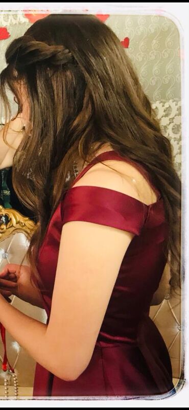 Bordo rəngdə uzun yarığlı ziyafət-gecə geyimi