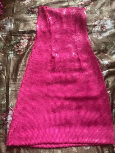 Parlaq çəhrayı rəngdə, paetka ilə tam örtülü, korset kəsimli qolsuz qadın donu.