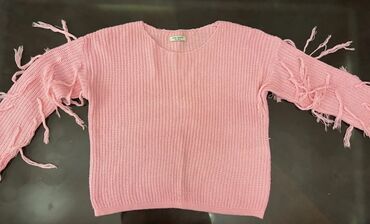 Zərif açıq çəhrayı rəngdə oversize sviter - Yumşaq, tüklü teksturaya malik, rahat və isti material - Geniş, uzun qol forması – modern və sərbəst siluet - Yuxarıdan enli, aşağıya düz kəsim; rahat o...