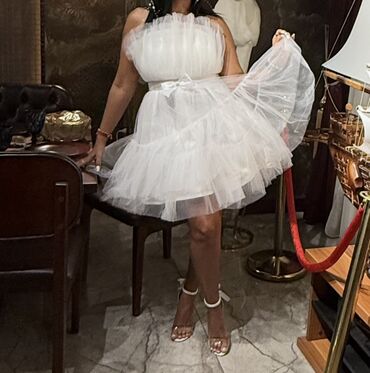- Model: strapless (çiyindən açıq) dizayn, yuxarı hissədə ruffled (büzgülü) tül