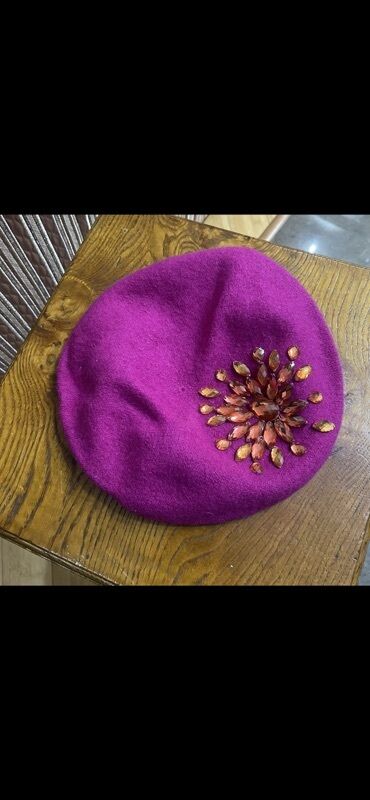 Stilini ön plana çıxaran, parlaq rəngi və daşlı detalı ilə xüsusi görünüş yaradan şıq beret.