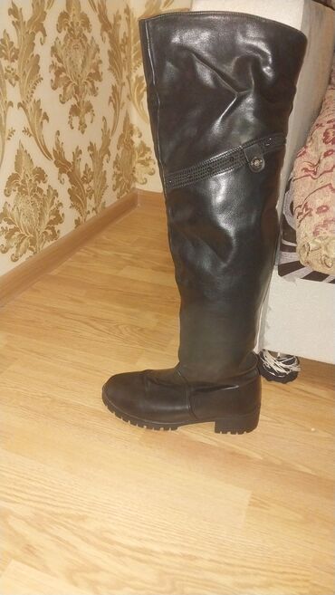 Qadınlar üçün dizdən yuxarı qara çəkmə