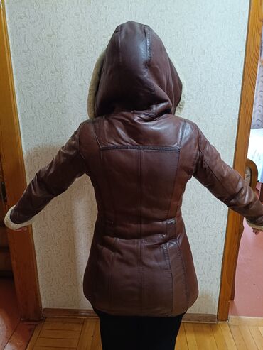 Esil dəri 170 m alinib 25 satilir olcu: M ve S e rahatliqla olar Qadın dəri jaketi - Rəng: tünd qəhvəyi - Material: təbii dəri; içlik – romb naxışlı kapitone atlas (isti və rahat) - Yaxa: süet eff...