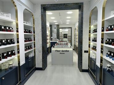 - Mağaza: Fleur Garden Moscow butik konsepsiyasında geniş seçim və eyni seriyadan müxtəlif ətir flakonları ilə vitrin təqdimatı.