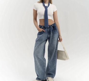 Şəhər stilinə rahatlıq və geniş siluet əlavə edən çoxistiqamətli cins şalvar.