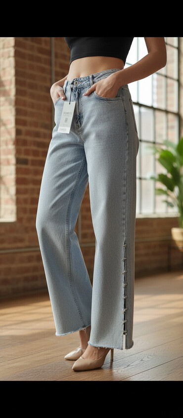 Model: DOMKSS etiketli geniş kəsimli cins şalvar