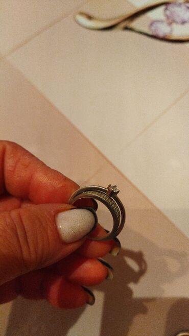 Gümüş üzük dəsti hər biri 16 m - Material: gümüş rəngli metal (vizual olaraq parlaq), klassik hamar qaşqaşlı halqa forması - Qaş: mərkəzdə tək daşlı dizayn (şəffaf, yuvarlaq kəsim), dırnaq saxlayıc...