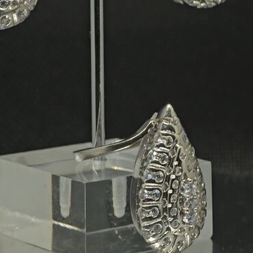 Bu dəst 925 gümüş Badam formalı sırğalar və uzuk ibarətdir. Hər bir element parıltılı daşlarla bəzədilmişdir və bu, onlara zərif və cəlbedici görünüş verir. uzuk və sırğalar eyni dizaynda olmaqla, vahid və ahəngdar bir görünüş yaradır. Bu dəst istənilən geyimə zəriflik qatacaq və xüsusi günlər üçün ideal seçimdir. Gündəlik istifadə üçün də uyğundur.