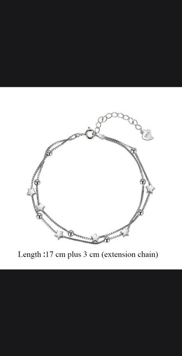 Ulduz bəzəkli ikili qandal - Dizayn: Mərkəzdə həcimli ulduz fiqurlu, ikiqat “snake chain” tipli zəncir quruluşu. Minimalist və diqqətçəkən. - Material: Metal ərintisi, parlaq cilalanmış səth. Rəng...