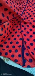 Qırmızı əsaslı, tünd göy iri xallı maxi don. Yüngül, axıcı parça. Dizayn detallar:
