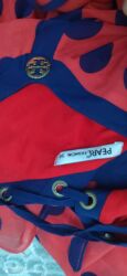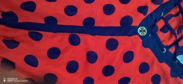 Gündəlik, yay və ya sahil tərzi üçün uyğundur; həm sandalet, həm də topuqlularla asan kombinlənir. Rəng: qırmızı üzərində tünd göy xallar. Uzun model.