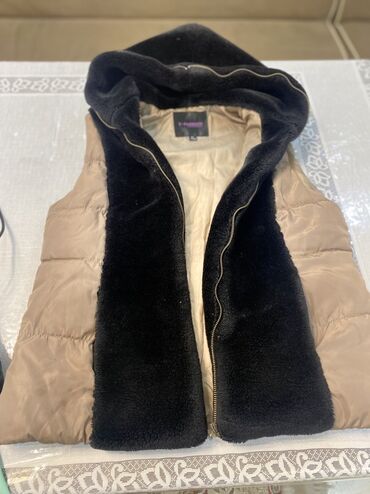 Bir dəfə geyinilib 28 manata alınıb Qadınlar üçün uzun, kapüşonlu, qolsuz şişmə jilet. - Rəng: xarici hissə qara, daxili astar açıq bənövşəyi. - Model: dizə yaxın uzunluq, düz kəsim, kapüşonlu. ...