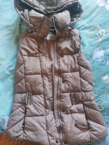 Qadınlar üçün qışlıq kapüşonlu jilet.