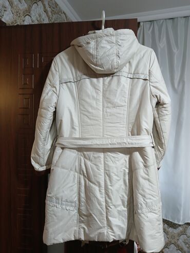 S razm etiketli 80m! (150 m alinmiwdi Uzun puffer qadın palto – krem/bej rəngdə - Model: uzun ölçü, dizdən aşağı kəsim - Rəng: açıq krem/bej - Kapüşonlu - Üfüqi tikişli “puff” panellər – isti saxl...