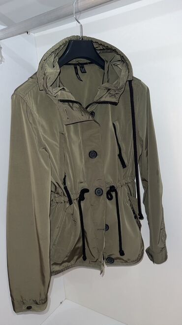 Zeytun-yaşıl rəngdə kapüşonlu yüngül parka/kurtka. Xüsusiyyətlər: -