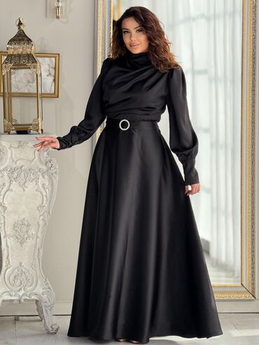 Zəriflik və sadəliyi birləşdirən bu model, parıltılı tokalı kəmər sayəsində bel xəttini ön plana çıxarır və axıcı ətək hər addımda zövqlü görünüş yaradır. Rəng çeşidi klassik və qlamur kombinlər üçün uyğundur.