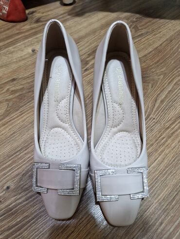 Zərif, klassik stildə qadın tuflisi. Alinib 80manata. 2- 3 defe geyinilib. Ancaq toya. - Model: Qalın dikdaban, sivri burun - Material: Parlaq laklı üst (patent effektli), yumşaq içlik - Rəng: Açı...