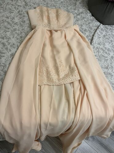 Zərif pudra rəngində ziyafət/libas dəsti: - Korsevari strapless üst