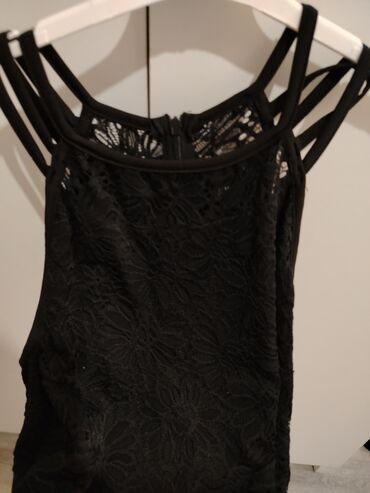 Qara rəngli zərif krujeva (dantel) don. Üst hissə çiynə yaxın, yuxarıdan halter tipli kəsimdədir və ikiqat nazik askılarla dizayn edilib. Arxa hissədə gizli fermuar var. Üzərində güllü krujeva naxışları, altında astar yerləşir. Düz, bədənə oturan siluet; ətək hissəsi dizdən bir qədər aşağı uzanır. Axşam dəvətləri, məclislər və xüsusi günlər üçün klassik və eleqant seçim. Çin istehsalı.