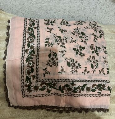 Şərf/şal – “Medrese” yazılı - Material: yüngül, nazik və şəffaf parça (şifon tipli), yumşaq toxunuşlu - Rəng: krem-ağ fon, alt hissədə tünd göy keçid; üzərində zərif, şərq naxışlı bəzəklər - Dizayn...