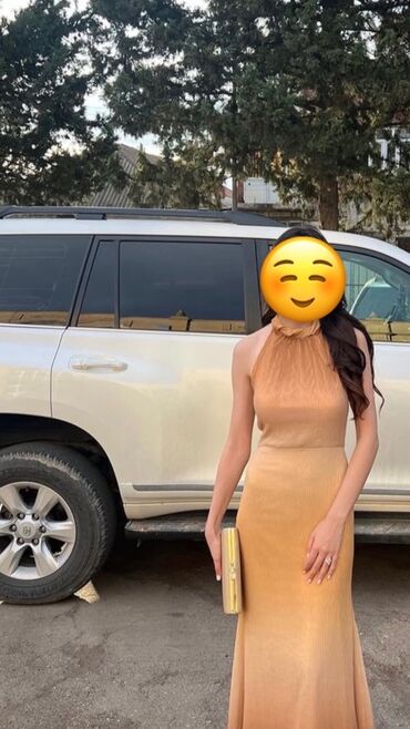 Zərif axşam/libas – şampan-qızılı rəngdə uzun don