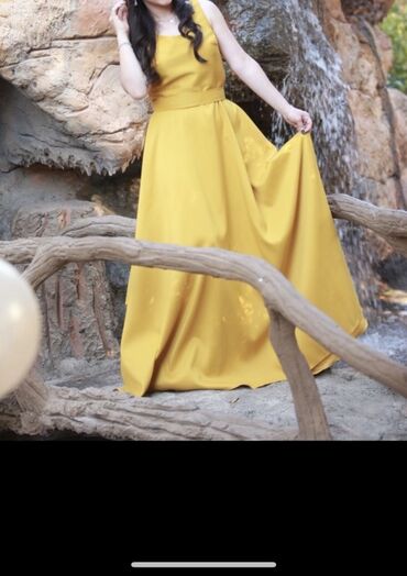 Zərif ziyafət/gecə libası – xardal-sarı rəngdə, maxi uzunluqda. - Üst