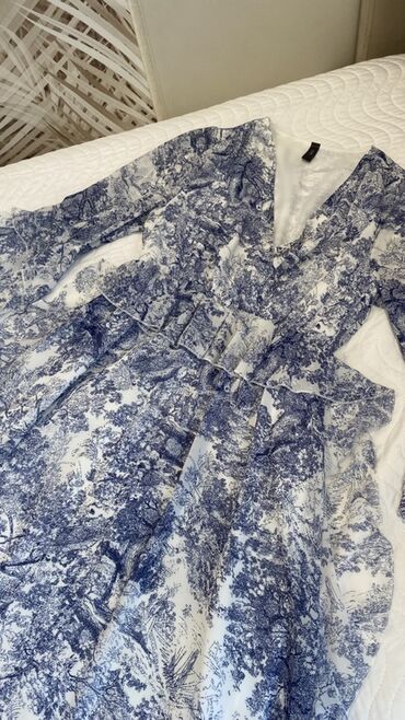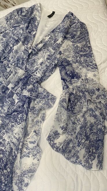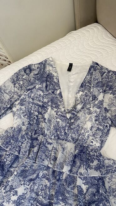 Qadın donu - Model: Qısaqollu, dizə yaxın uzunluqda - Rəng və naxış: Ağ fon üzərində bənövşəyi və çəhrayı dairəvi abstrakt print, ön hissədə qara-ağ zolaqlı detallar - Yaxa: Dairəvi yaxa, ön hissə...