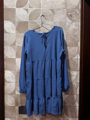 Qadın paltarı – Babygul, Türkiyə istehsalı, ölçü XXL. - Rəng və naxış: tünd-mavi “tie-dye” effektli parça. - Yaxa: dairəvi, ağ-qara zolaqlı biye ilə haşiyələnmiş. - Qol: qısa, reglan tikişli. - Ön...