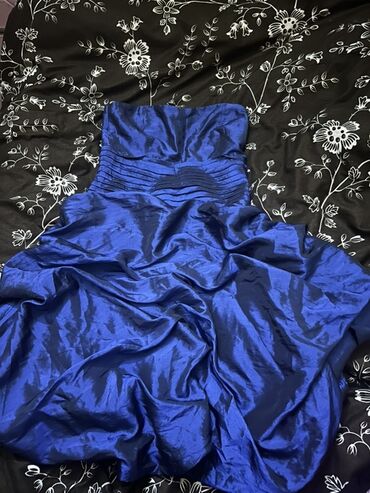 Mavi (kobalt) rəngdə uzun ziyafət/gecə paltarı. - Asimmetrik, bir çiyindən askılı dizayn - Yuxarı hissədə drapeli kəsim - Bel və çiyin hissəsində iri daşlarla/beads ilə bəzəklər (gümüş tonlarda qaş...