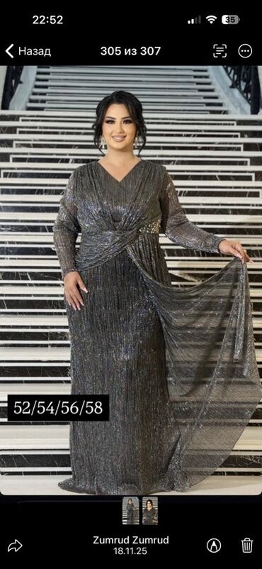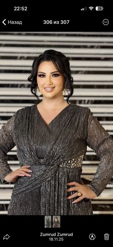 Zərif ziyafət/libas - Rəng: toz-çəhrayı (lilac tonlarında) - Model: uzun, A-kəsimli, yüngül flarlı ətək - Parça: şəffaf tül üst qat, incə romb naxışlı; altlıqla birlikdə - Yaxa: V-kəsim - Qol: 3/4...