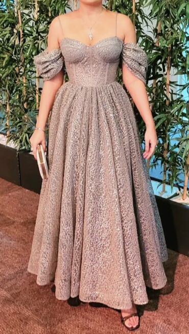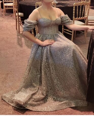 Zərif gecə/libas Bir defe geyilib. - Rəng: metalik gümüşü - Parça