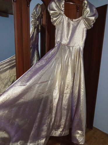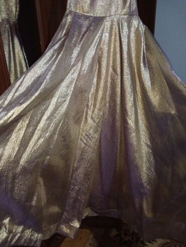 Zərif ziyafət/gecə geyimi cemi 1-2 dede geyinilib 36-38 beden uygundur - Model: uzun, A-kəsimli ətəkli, geniş büzməli siluet - Rənglər: tünd bənövşəyi (ətək) + açıq qızılı (üst hissə) - Üst hissə: ...