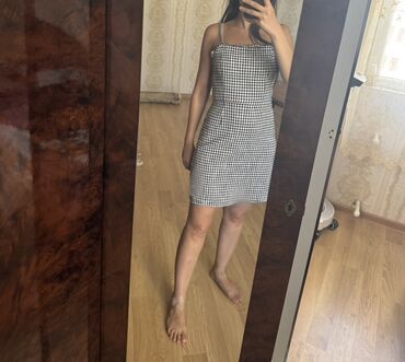 Qara-ağ dama (gingham) naxışlı yay donu