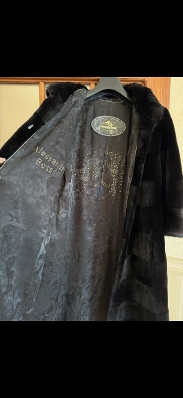 Qadınlar üçün qara xəz ( shuba) - Model: kapüşonlu, beldən kəmərli - Material: yumşaq qara xəz (daxili atlas/parça astar) - Dizayn: iri dekorativ broş düymə, gizli düymələmə - Uzunluq: dizəden (or...