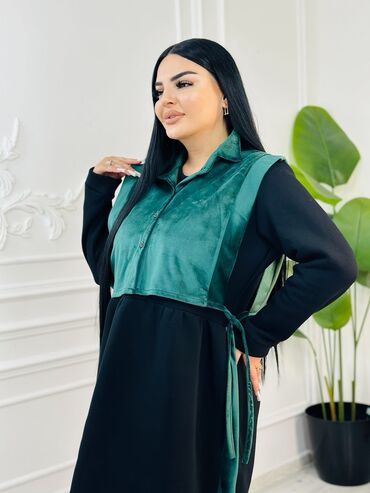 - Dizayn: ön hissədə qısa, yaxalı və düyməli məxmər “overlay” (üstlük); iki yandan bağlama kəmərləri ilə bədəni incə göstərən formalaşdırma