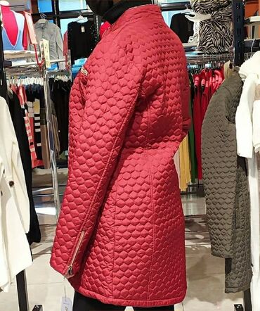 Qadın palto – SHERAY, ölçü 38,40 yeniden secilmir .cox az geyiiniliblər,şəkilləri vərəqləyin - Rəng: tünd kərpic/qırmızı - Model: asimmetrik qapaqlı, böyük yaka, bel hissəsi yığmalı, yan ciblərlə ...