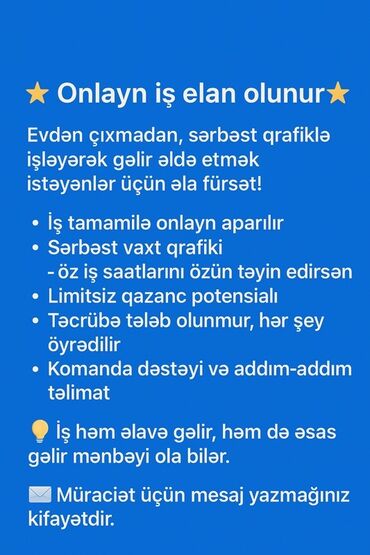 - İş həm əlavə, həm də əsas gəlir mənbəyi ola bilər