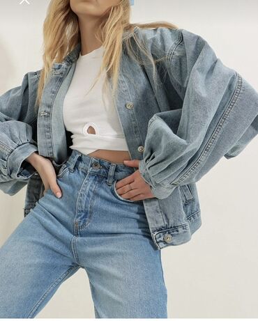 Qadınlar üçün oversize denim ceket - Rəng: açıq mavi (light wash) -